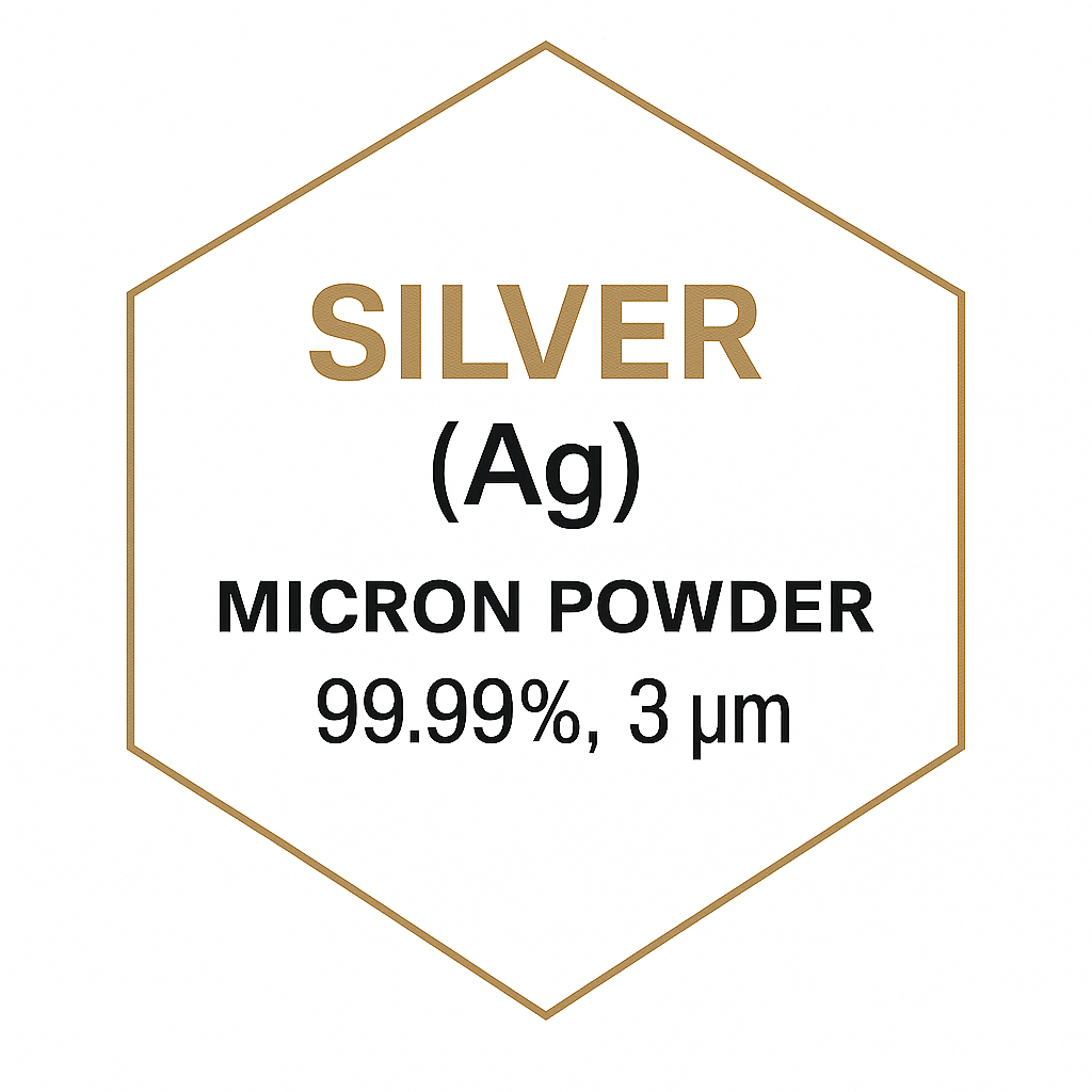 Silver (Ag) Micron Powder is a high-purity metallic powder with excellent electrical conductivity, thermal conductivity, catalytic performance, and antibacterial activity. Produced with 99.99% purity and an average particle size of 3 µm, this fine dark gray metallic powder exhibits a cubic crystal structure and is widely used in electronics, catalysis, alloys, and advanced industrial applications.