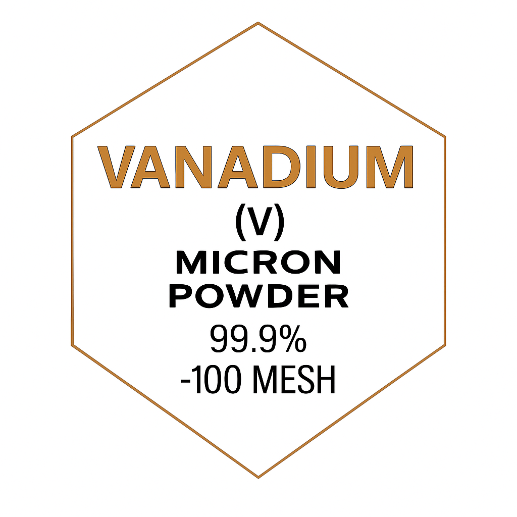 Vanadium (V) Micron Powder with a particle size of -100 mesh and a purity of 99.9% is a high-performance metallic powder valued for its strength-enhancing, corrosion-resistant, and catalytic properties. Vanadium is a transition metal with a body-centered cubic (BCC) crystal structure, making it mechanically robust and thermally stable.