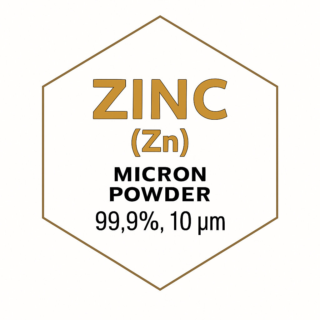 Zinc (Zn) Micron Powder with 99.9% purity and an average particle size of 10 µm is a high-performance metallic powder widely used in alloys, catalysts, pyrotechnics, and chemical processes. With its hexagonal crystal structure, moderate hardness (Mohs 2.5), and excellent electrical conductivity, zinc plays a vital role in both functional coatings and structural material applications.